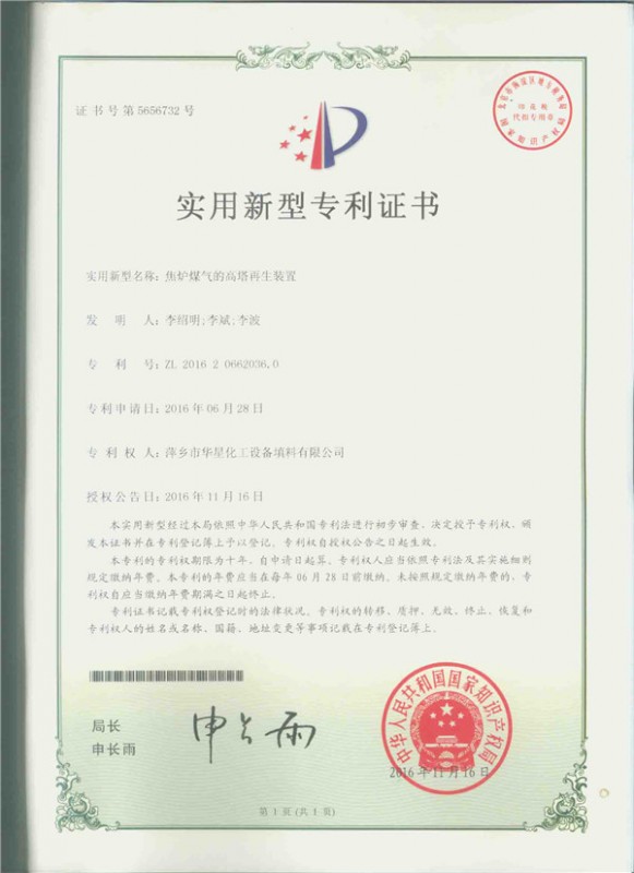 • 焦爐煤氣的高塔再生裝置-實用