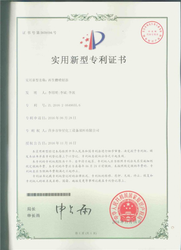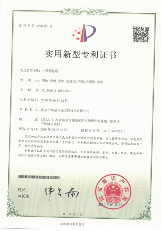 • 一種脫硫氧化再生塔-實(shí)用新型專(zhuān)利證書(shū)_
